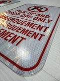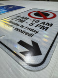 Enhance safety and visibility with our custom printed parking signs, crafted from heavy-duty .081 aluminum for superior strength and durability. Each sign features high-intensity reflective sheeting, ensuring maximum visibility day or night, in all weather conditions.