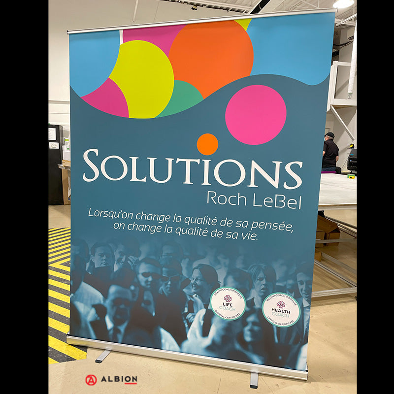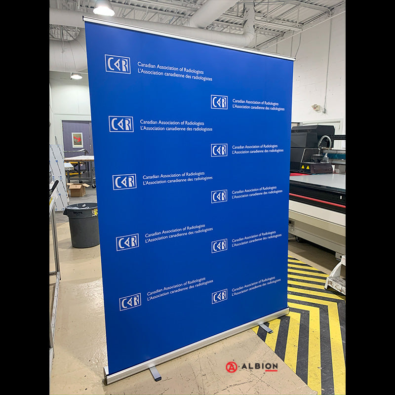 The TITANPLUS Roll-Up Banner is our largest banner stand. At 60 inches wide, this roll-up offers an instant, lightweight premium display setup in minutes. It is sure to get noticed at any event or exhibition. Large and small businesses use these cost-effective tools to effectively convey their message. It features a sturdy steel base with a wide footprint that doesn't require protruding feet. The robust base and telescopic poles fit perfectly into a padded black nylon carrying bag with an adjustable shoulder strap and address card pouch, making it ready for travel.
